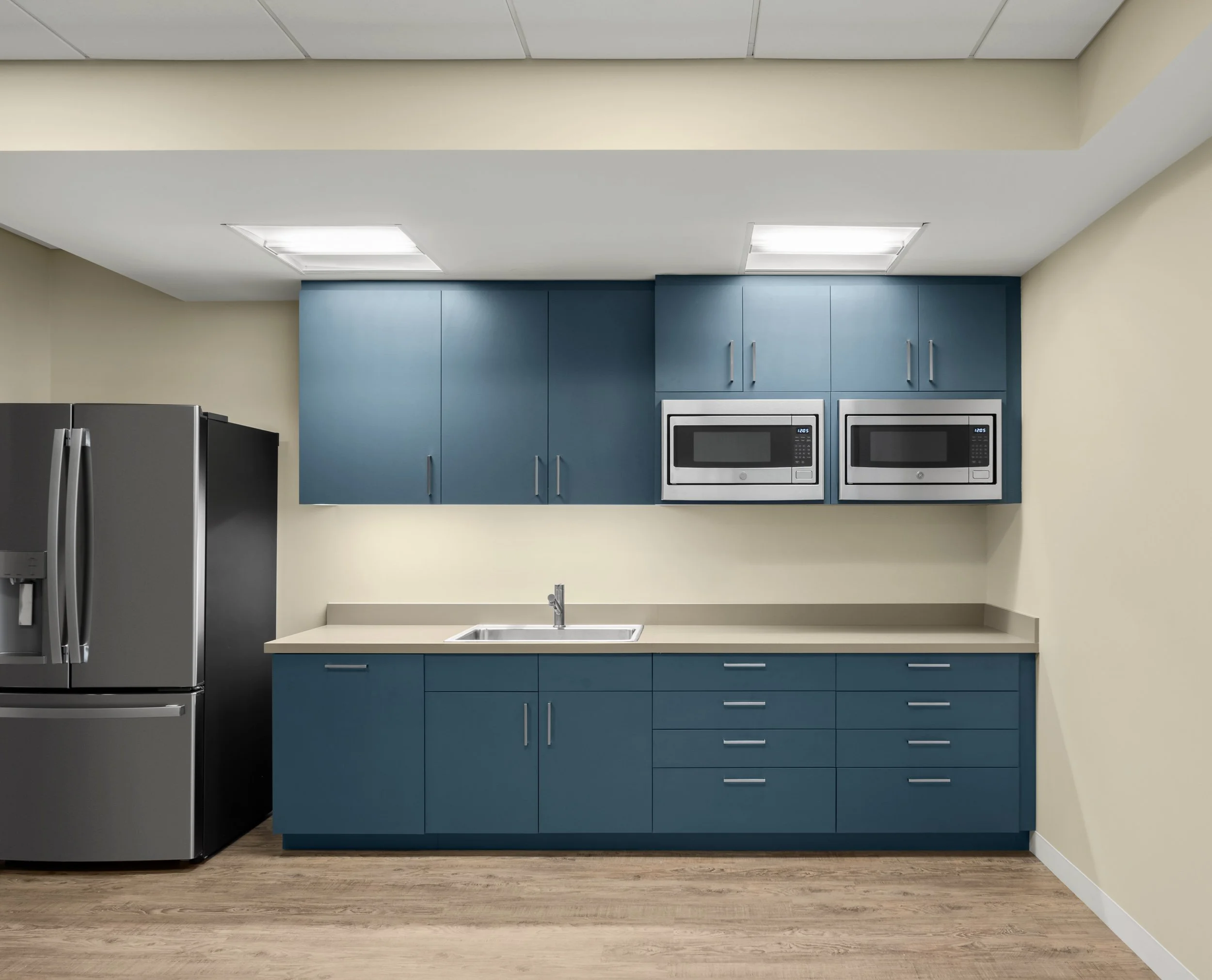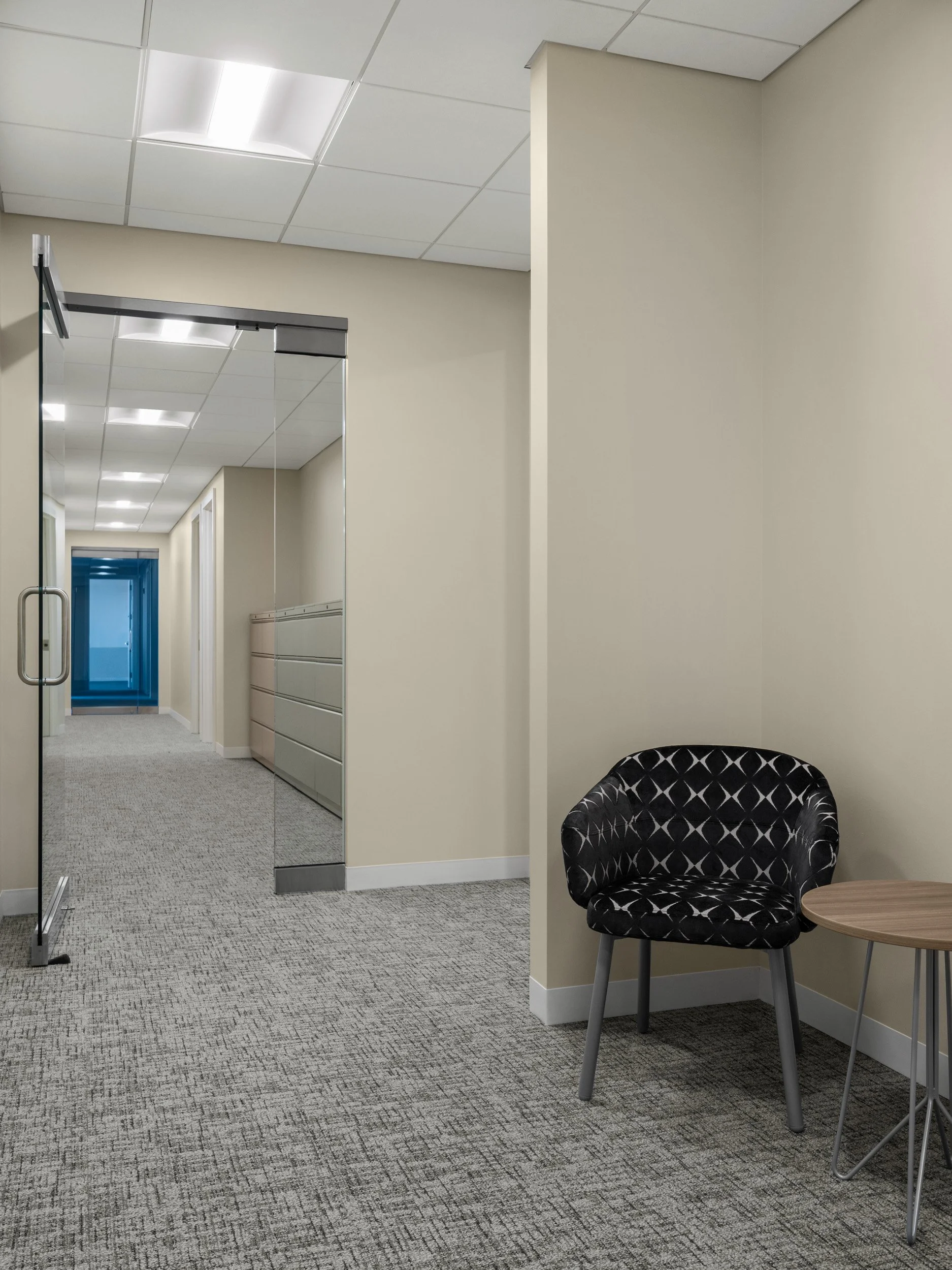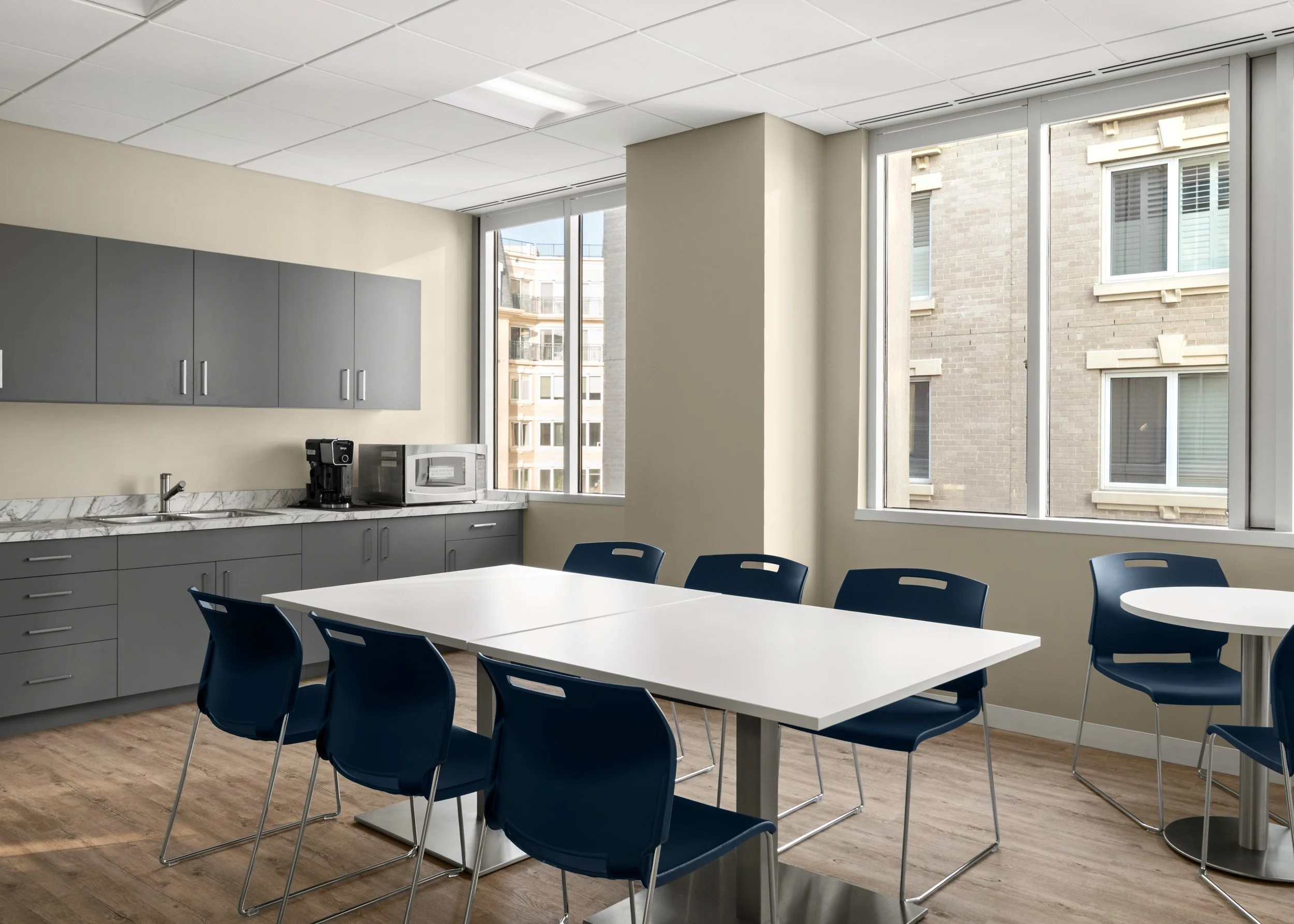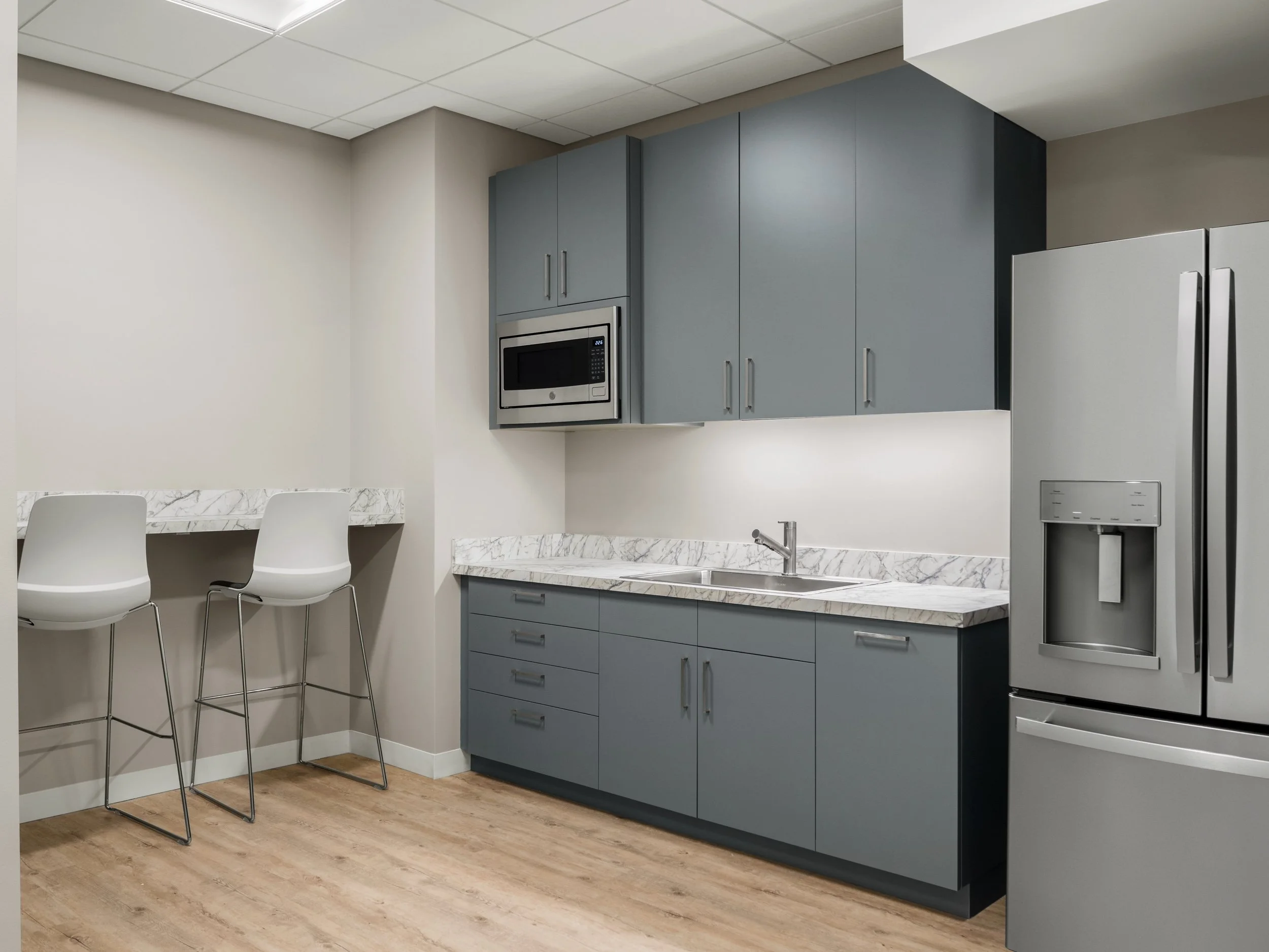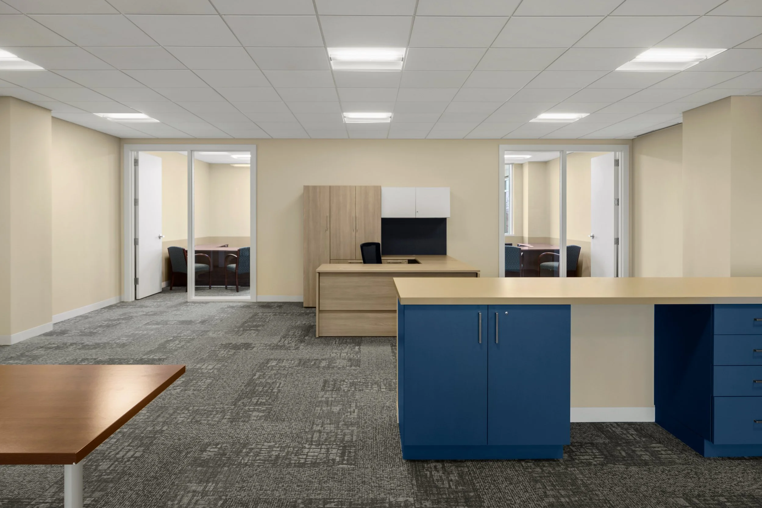 This multi-floor interior renovation upgraded and reconfigured existing suites within an occupied commercial building. Work was carefully phased to minimize disruption while redesigning several floors to better support evolving tenant needs. The project refreshed private offices, conference rooms, workrooms, storage areas, and the breakrooms with a clean, transitional design. The interior palette was tailored to complement key existing furniture pieces while introducing modernized finishes, resulting in a cohesive workspace.